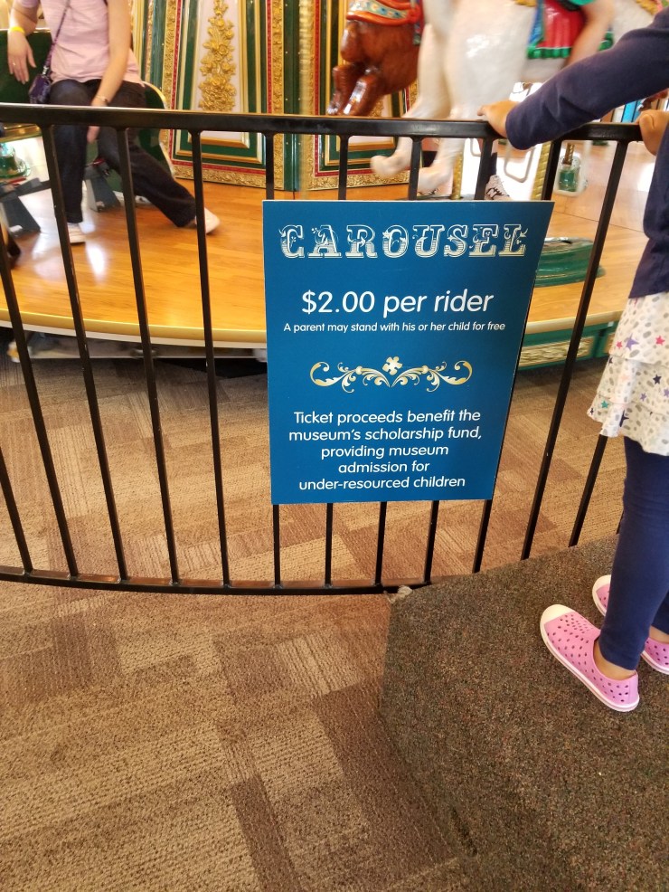 Our most recent experience was visiting the Children’s Museum of Richmond. We used our senses to do some many things including riding the carousel, serving lunch in the diner and producing and starring in our very own performance in the theater, which added a unique touch to this museum. This museum is perfect for curious toddlers and pre-schoolers with vivid imaginations.